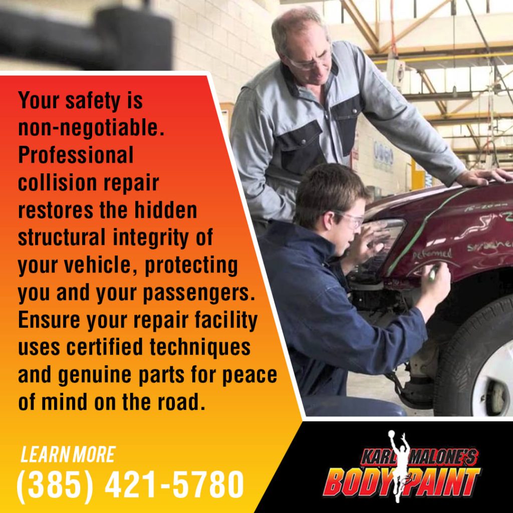 Your vehicle’s safety depends entirely on proper collision repair after an accident. Professional auto collision repairrestores structural integrity that protects you and your passengers in future crashes. At Karl Malone’s Body & Paint, we understand that shortcuts in collision repair can mean the difference between life and death on Utah roads.